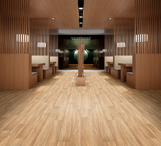 Piso vinílico homogênio para tráfego intenso, mantendo a beleza e praticidade.